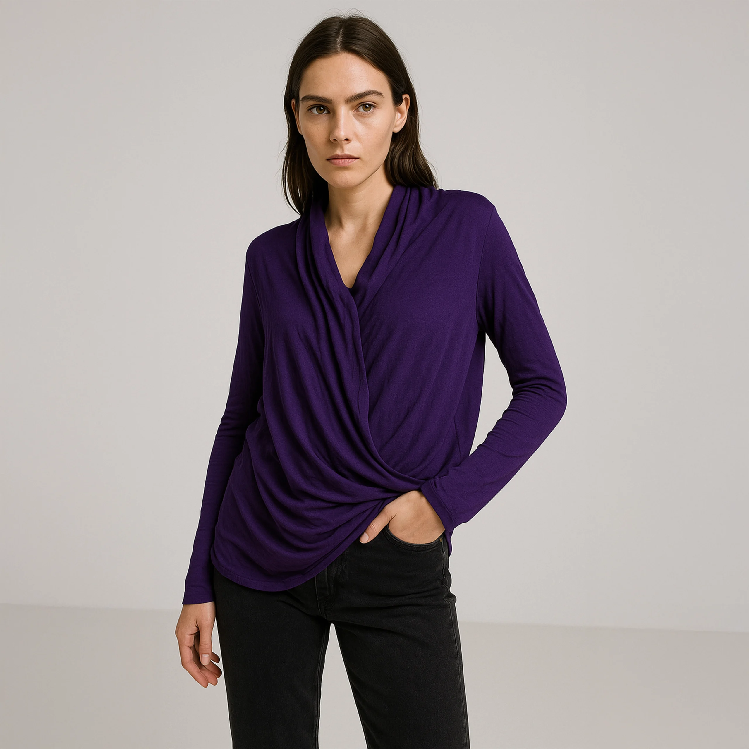Effortless style meets cozy elegance in the Twilight Drape Top.