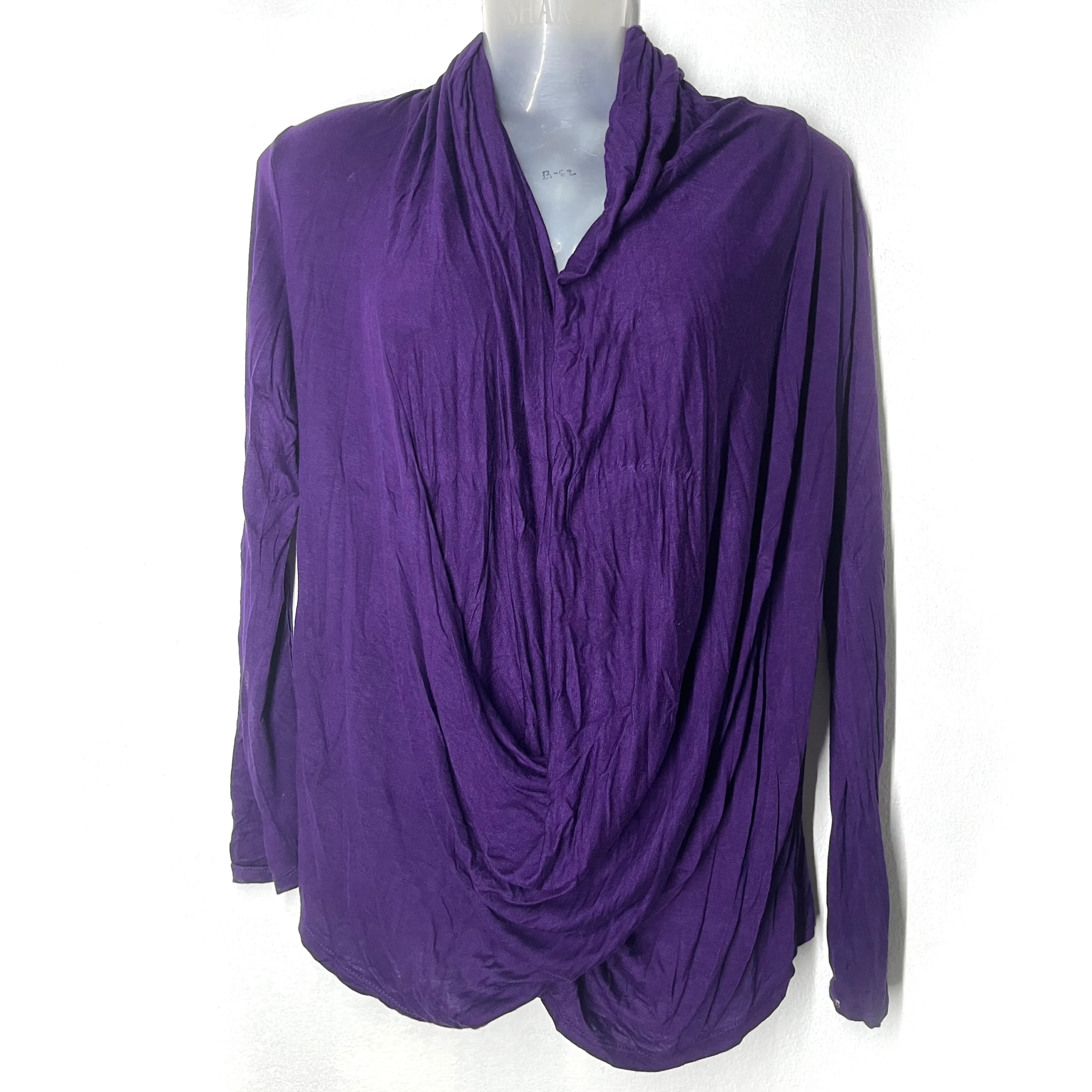 The Twilight Drape Top from Rewind Thrifts combines soft sophistication with a touch of drama. Made with lightweight stretch fabric, it features a relaxed draped front that naturally flatters your figure. Long sleeves keep you cozy, while the rich twilight purple hue adds a pop of understated glam. Pair it with denim, skirts, or layered under jackets for a chic, versatile look.