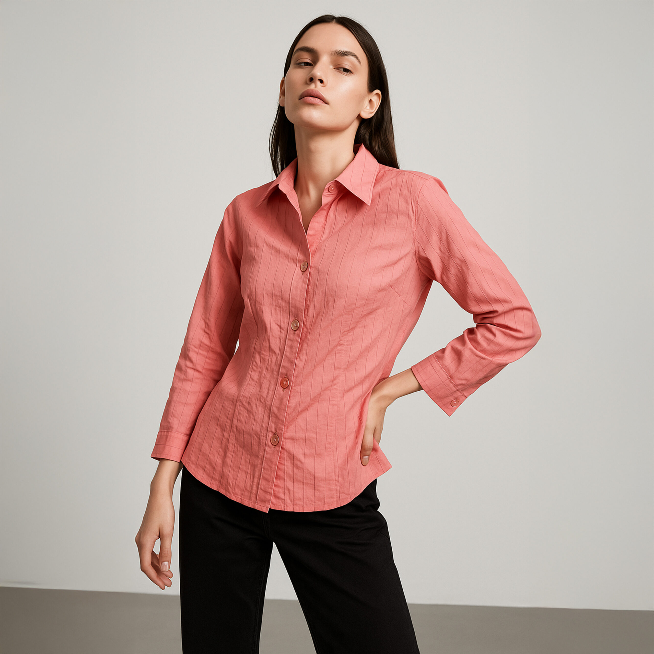Power up your basics with the Coral Charm Structured Shirt.