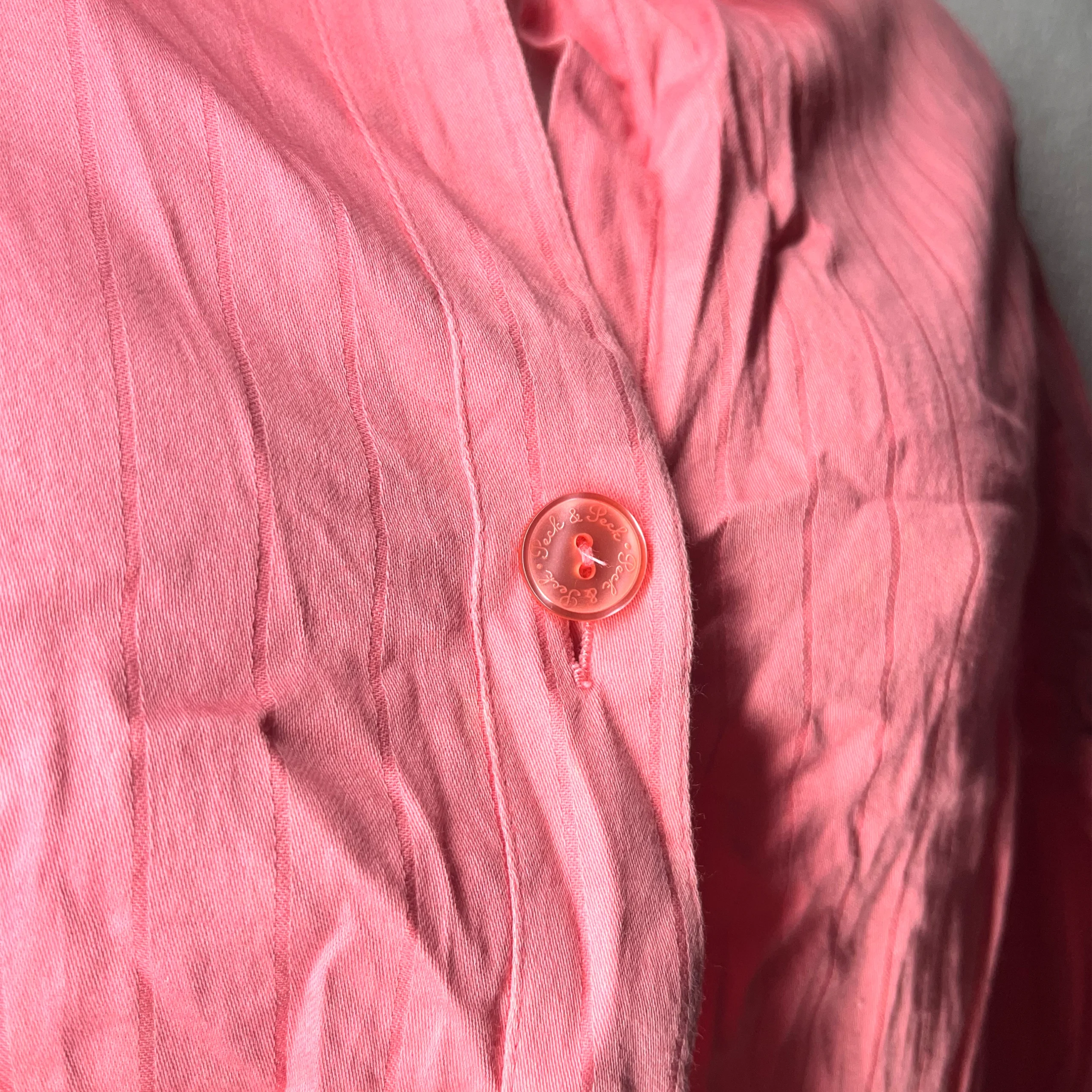 The clean lines, tapered waist, and soft coral color make it perfect for both formal and smart-casual looks.