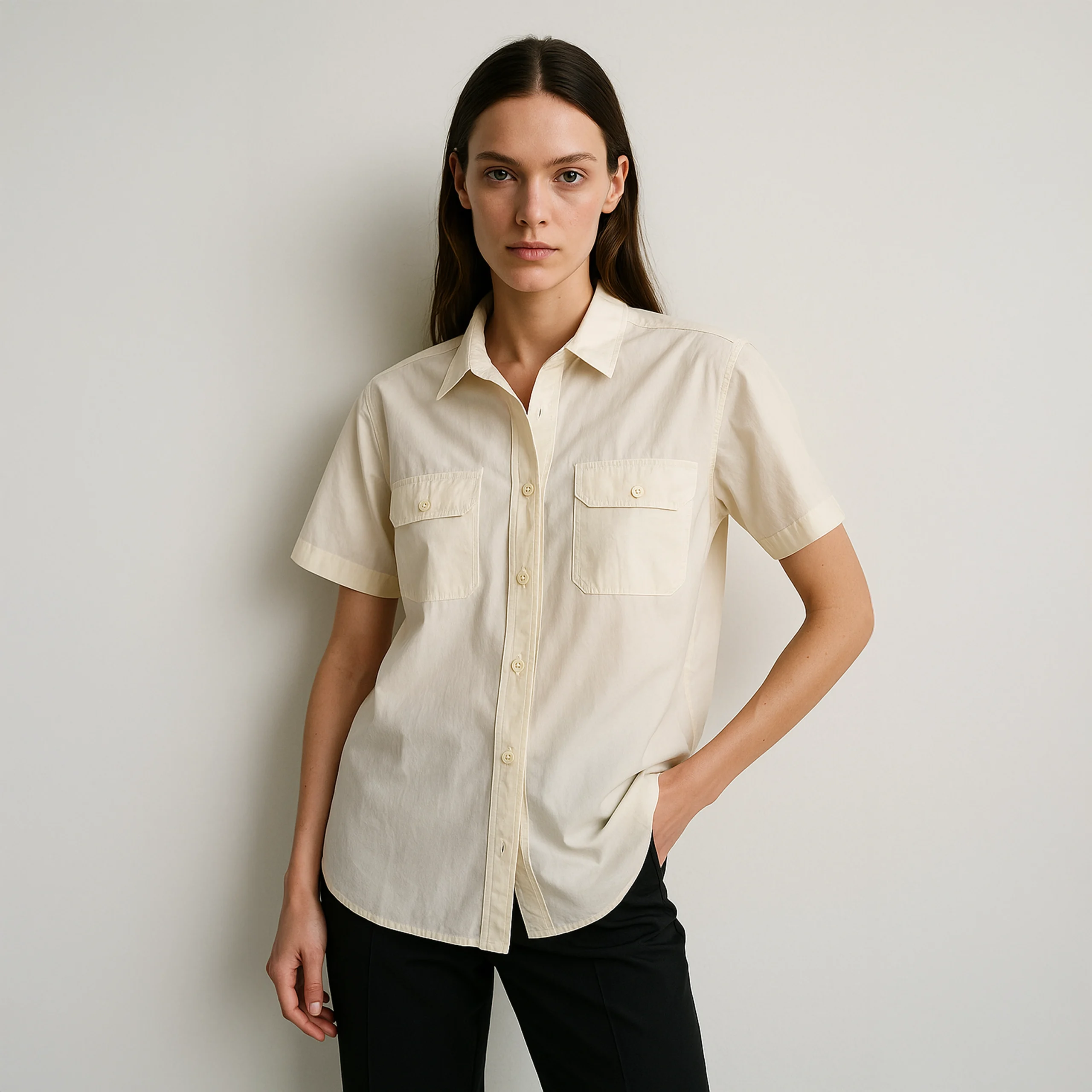 Designed with a structured yet relaxed fit, this timeless piece features a button-down front, dual chest pockets, and a crisp collar, making it a versatile addition to any wardrobe.