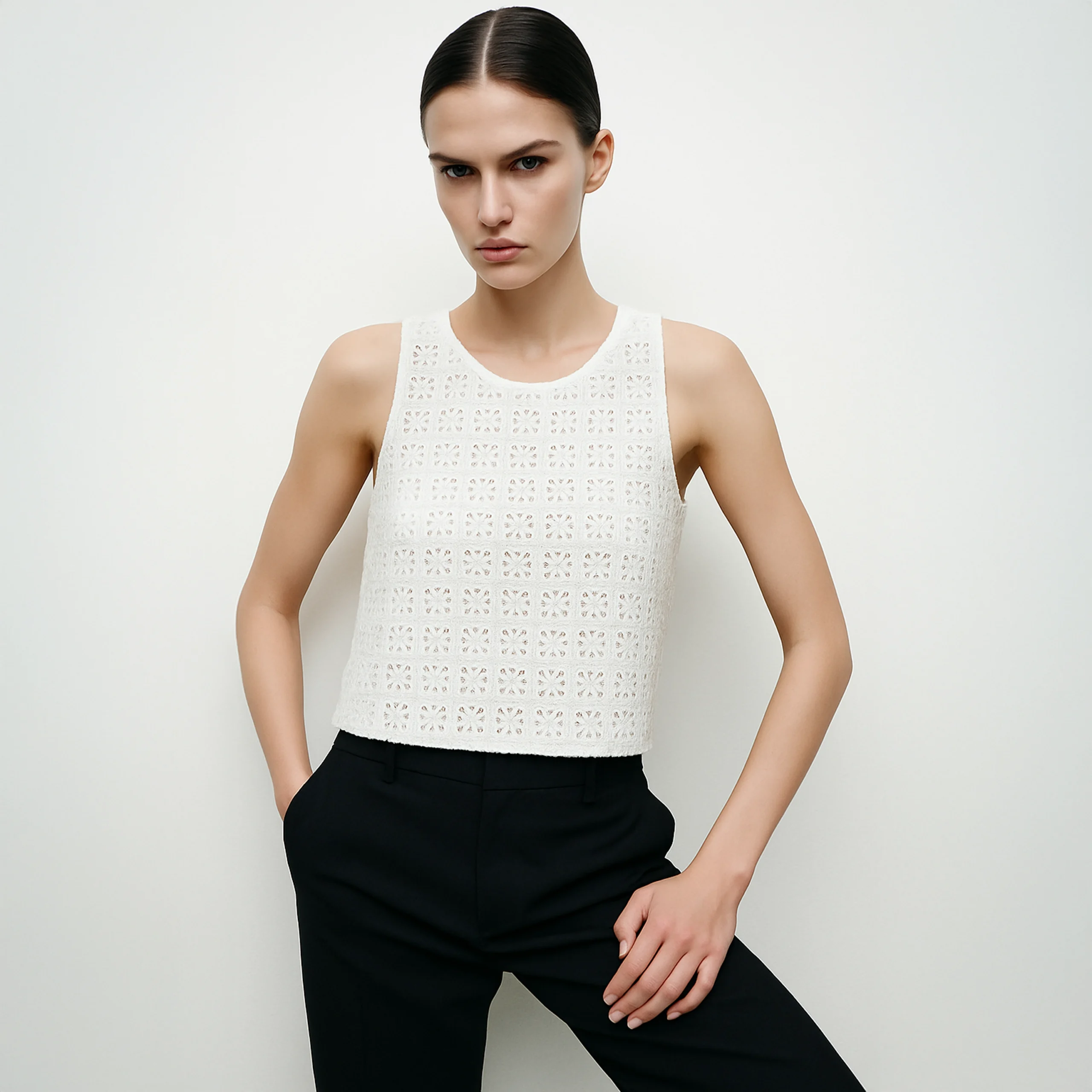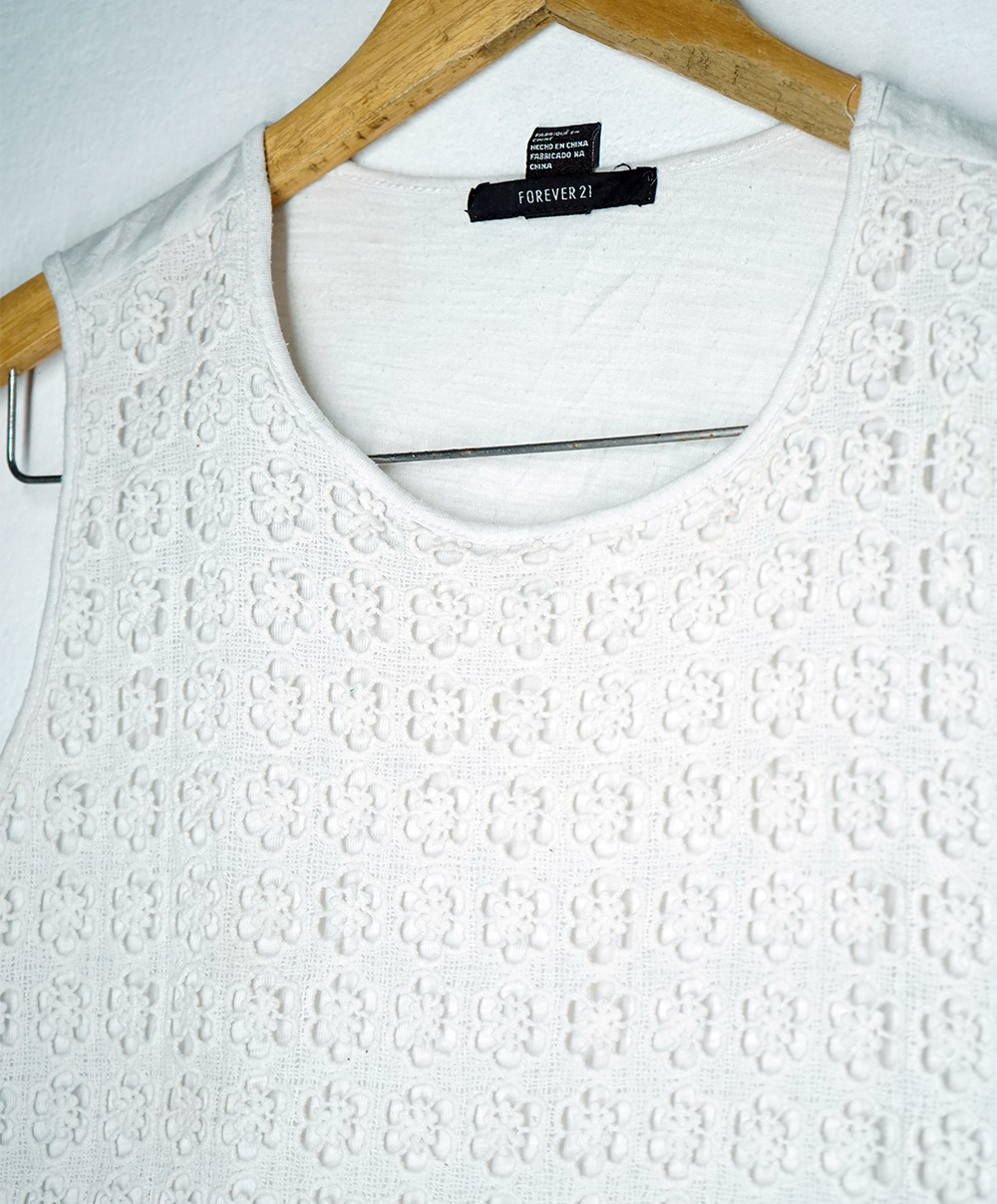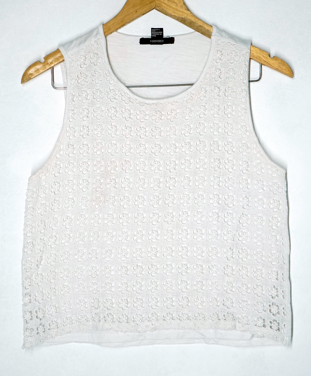 A vintage-inspired Forever 21 sleeveless lace top featuring delicate floral embroidery and a breathable, semi-sheer fabric. Perfect for layering or wearing solo, this piece blends elegance and comfort effortlessly.