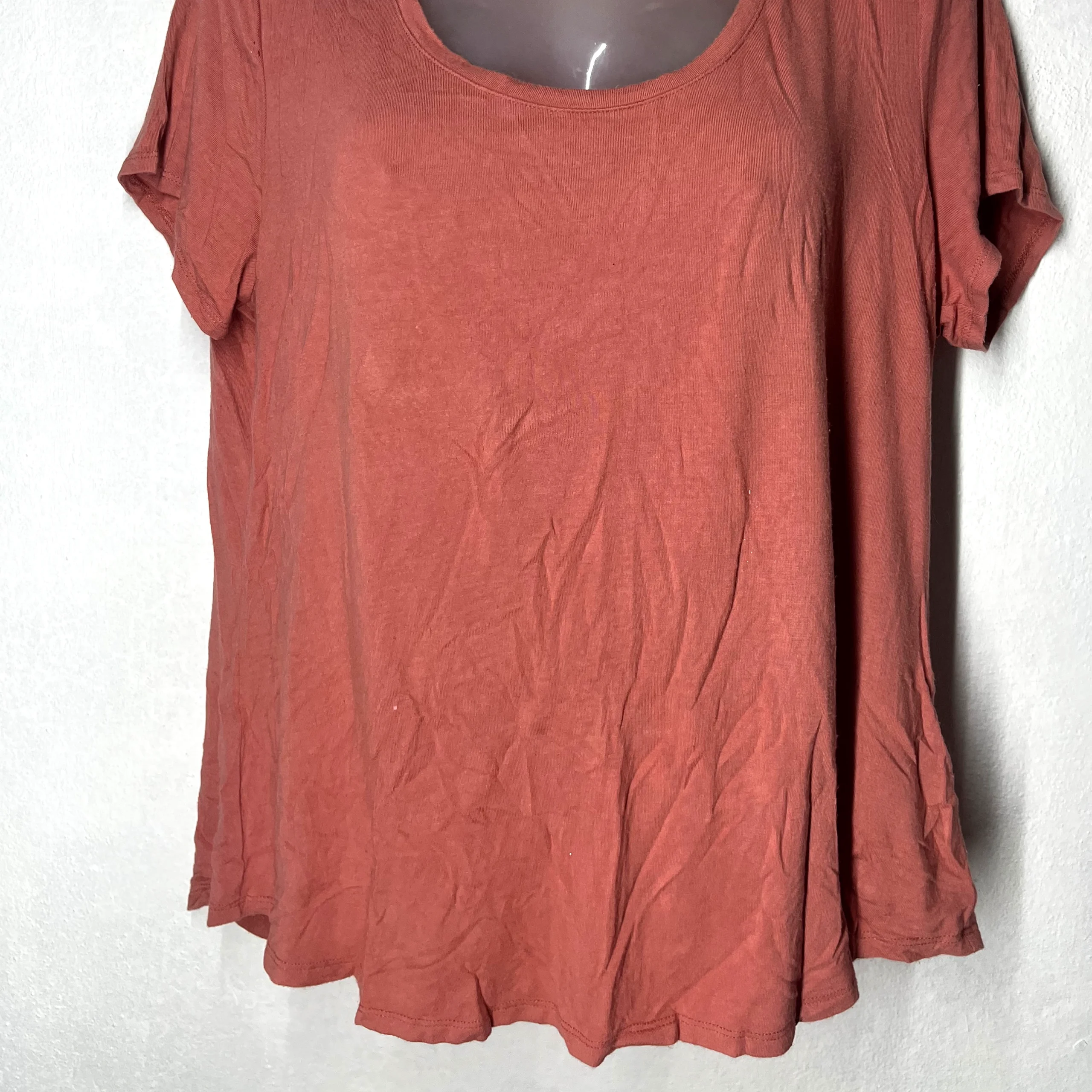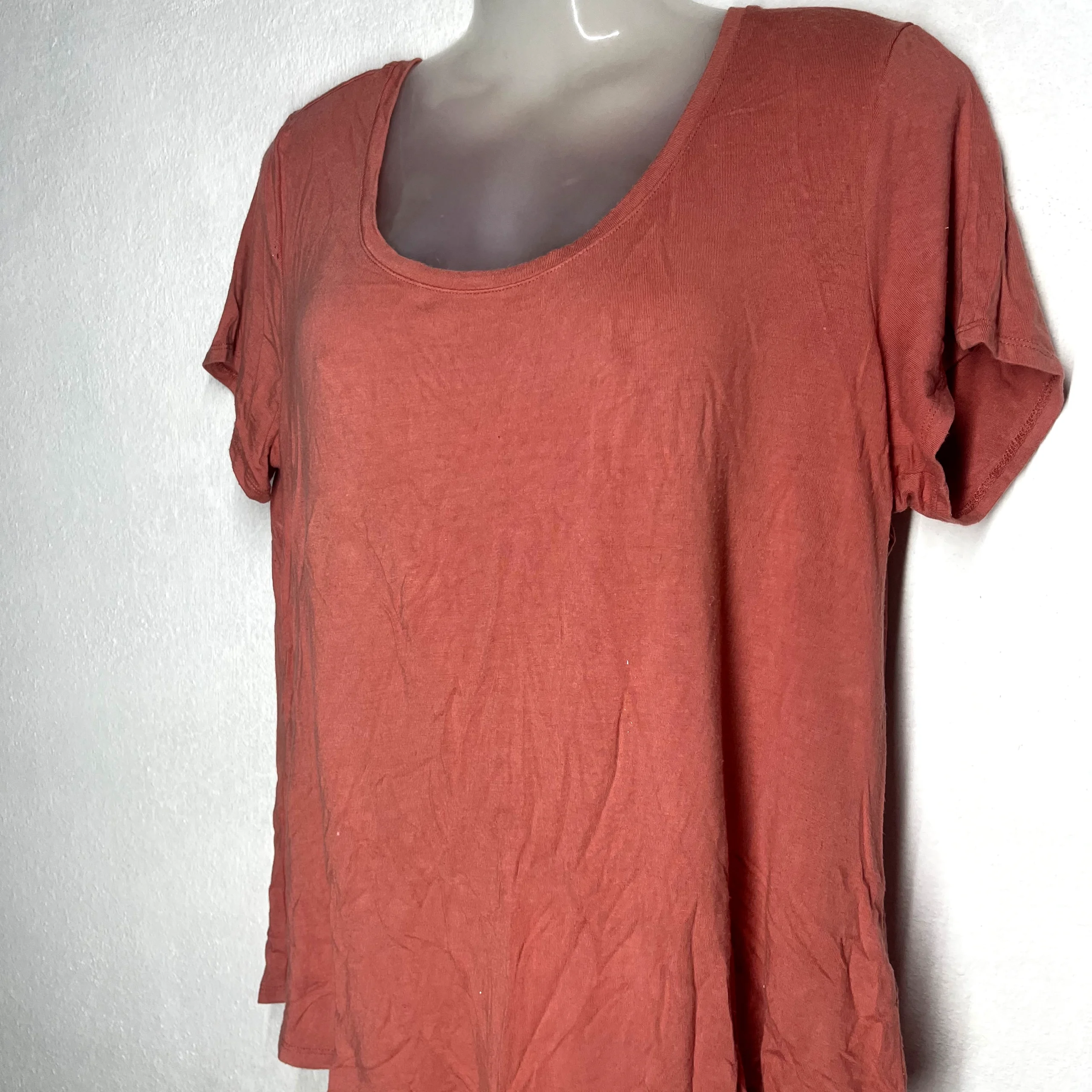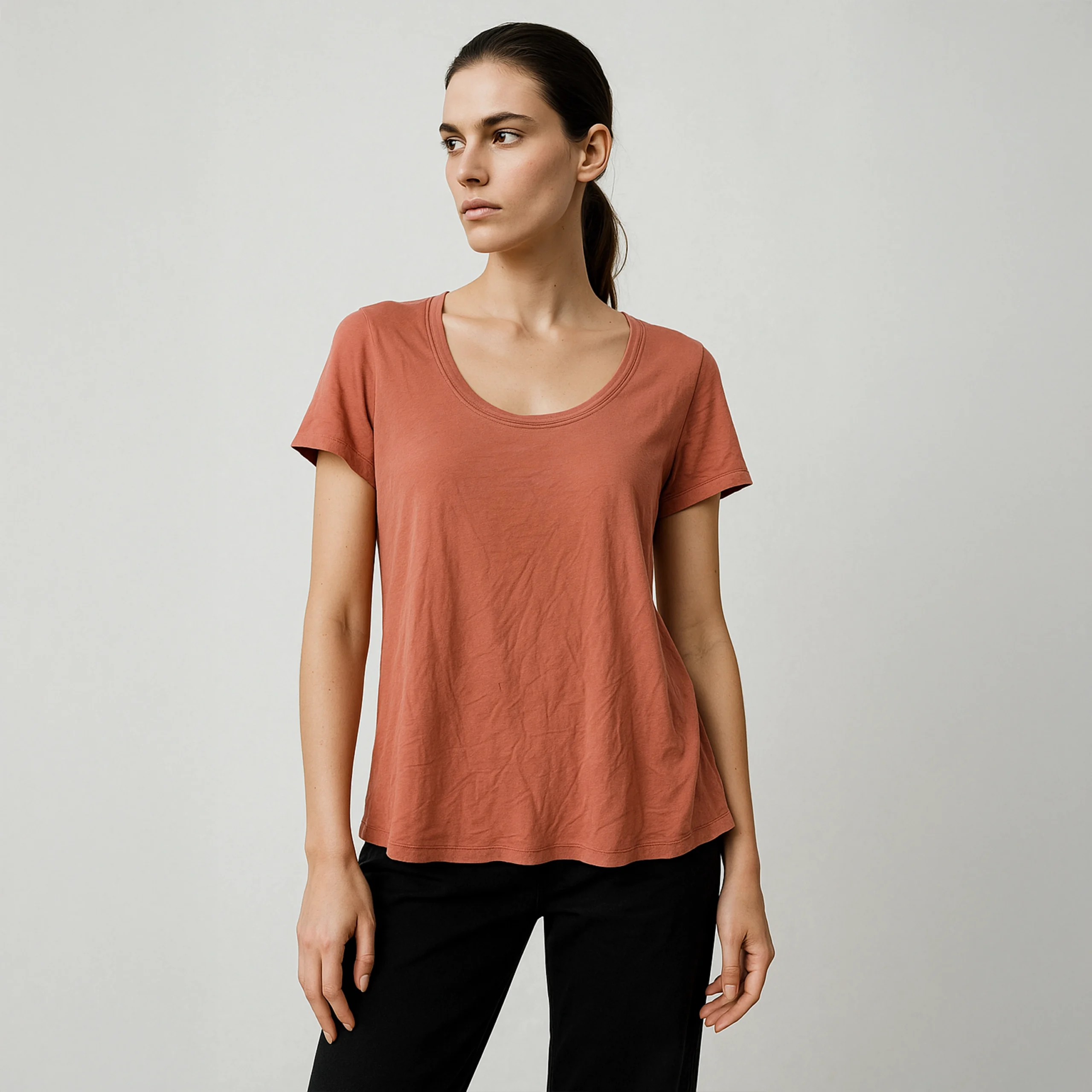 Warm and effortless. A terracotta short-sleeve top with a scoop neckline, perfect for everyday wear.