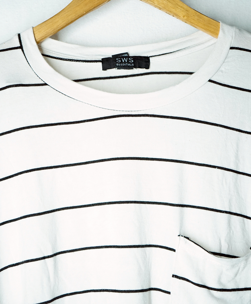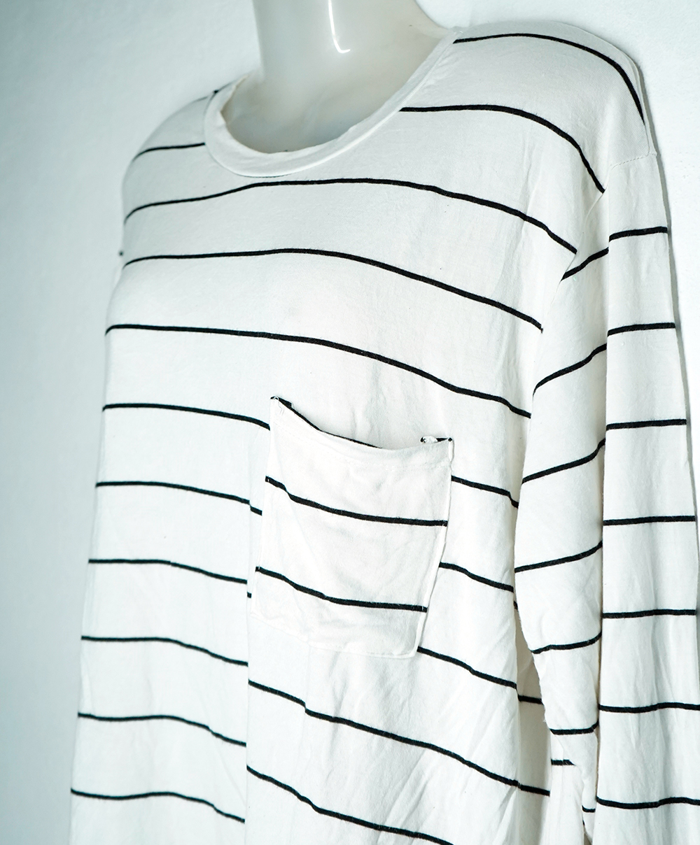 A classic striped long-sleeve tee with a front pocket, offering a relaxed fit and timeless appeal. Perfect for everyday wear, layering, or a minimalist streetwear look. Sustainably thrifted and exclusively available at Rewind Thrifts.