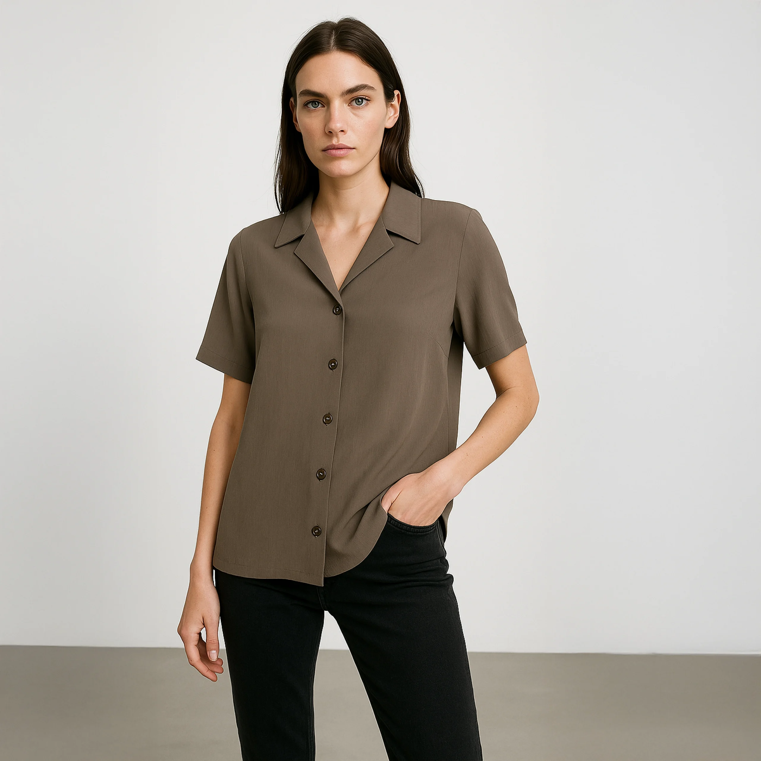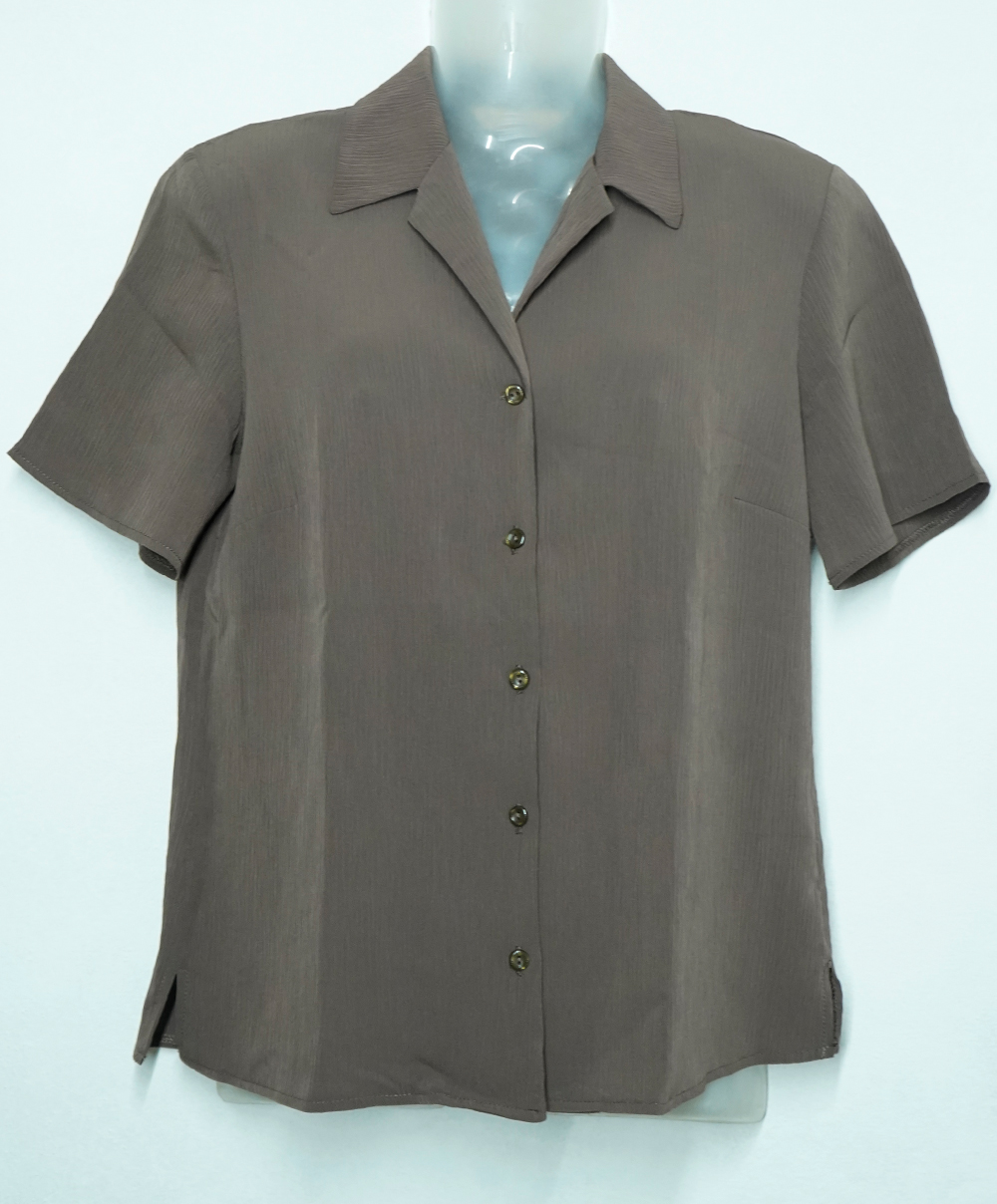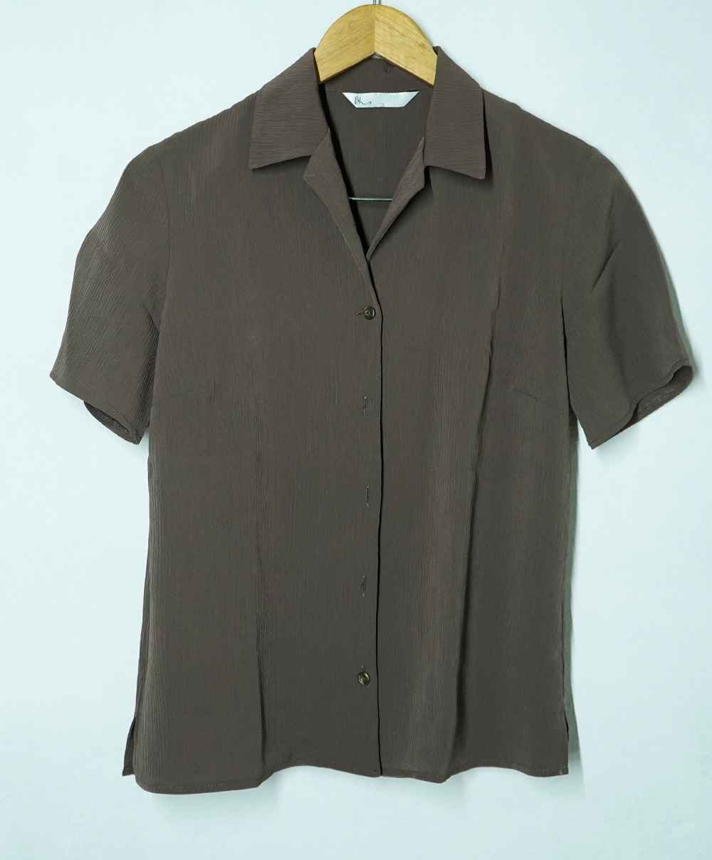 Elevate your wardrobe with this timeless vintage brown button-down shirt, featuring a subtle textured pattern that adds depth and sophistication to your outfit. Crafted from lightweight and breathable fabric, this short-sleeved shirt offers both comfort and style, making it a versatile piece for casual and semi-formal looks.